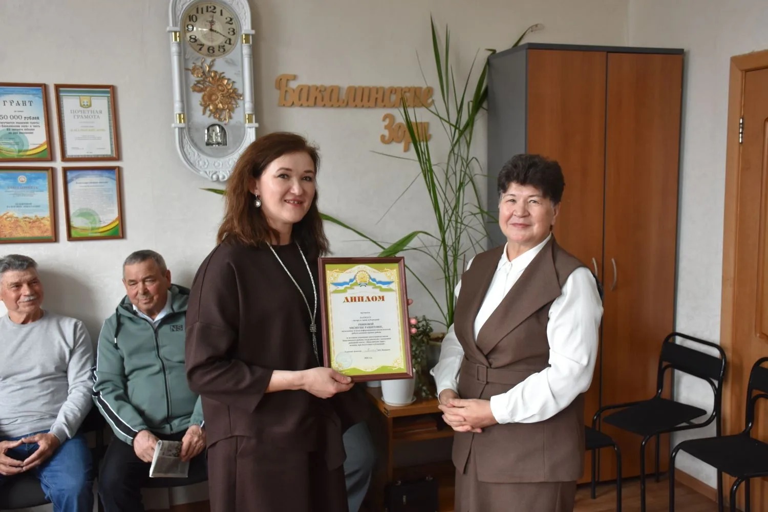 С большим удовольствием вручили заслуженные награды – Дипломы Лауреатам года – авторам и героям публикаций за активное освещение жизни района, сотрудничество с редакцией районной газеты «Бакалинские зори», помощь при подготовке материалов: